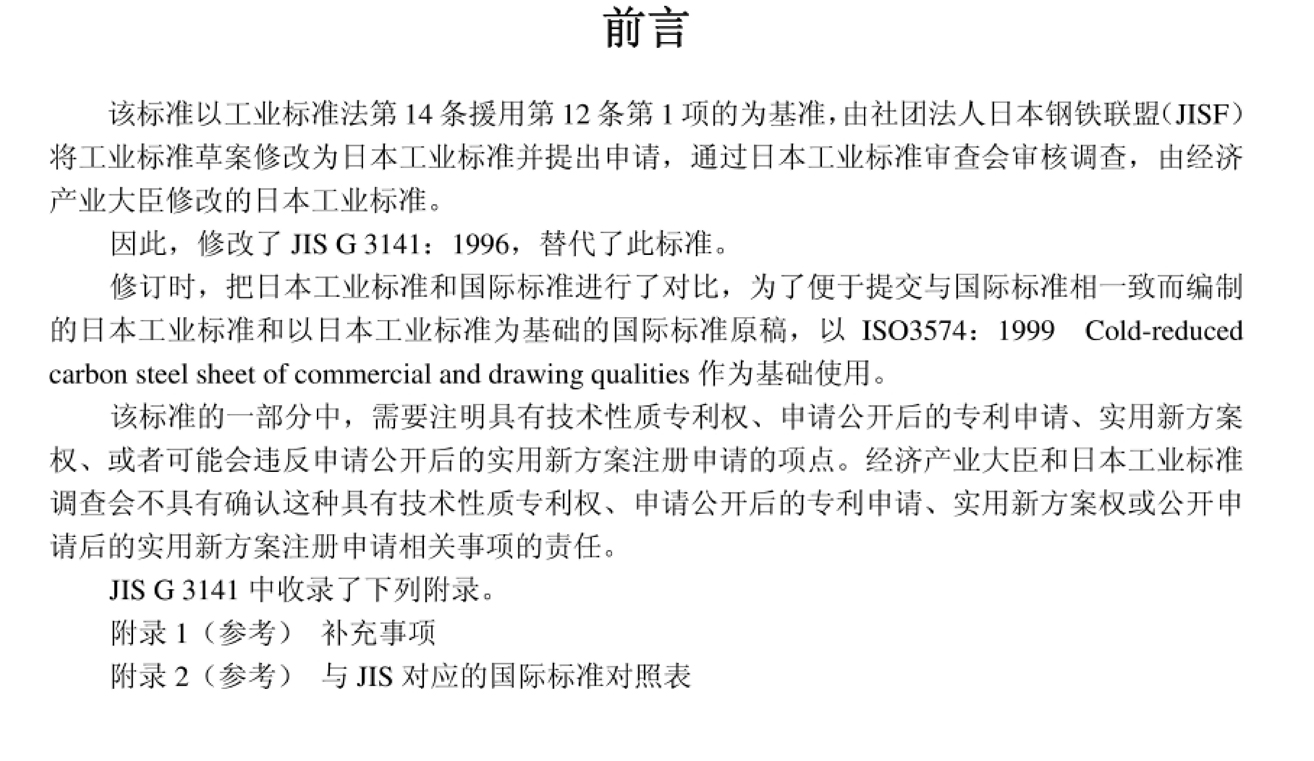 日本工业标准JIS G 3141-2011冷轧钢板及钢带(中文版)