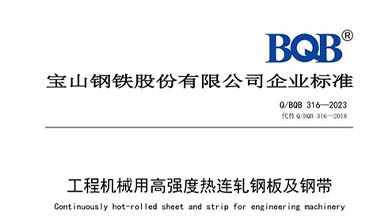 宝钢企标Q/BQB 316-2023 工程机械用高强度热连轧钢板及钢带 执行标准