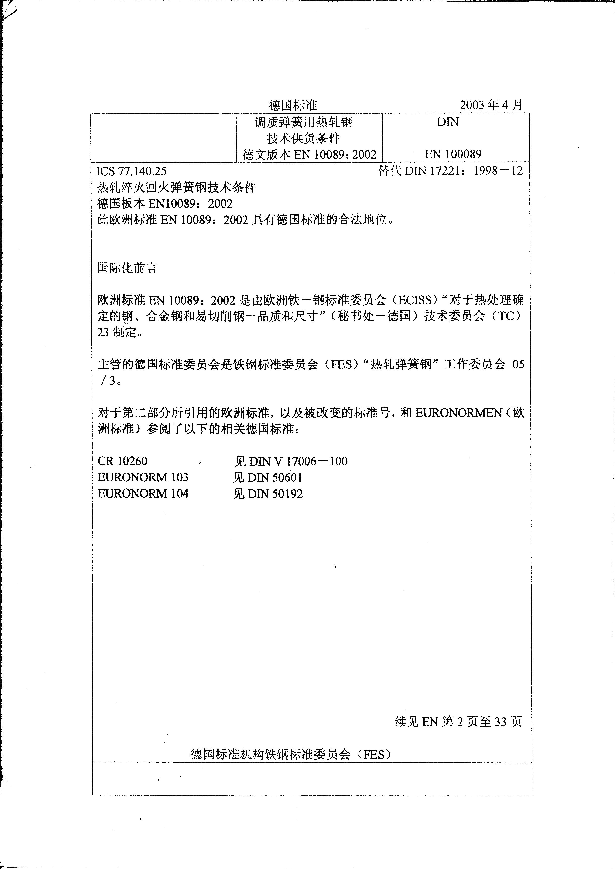 (剩余部分请参看:DIN EN 10089:2002弹簧钢(02))